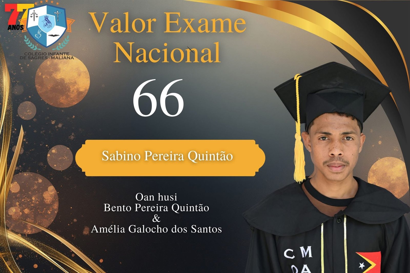 Escola Colégio Infante de Sagres Maliana halo serimonia graduasaun ba finalista sira ho susesu no laran kontente iha loron ida ohin. Iha seremonia ne’e, escola orgulho tebes tamba finalista sira hetan prestasaun extraordinária iha nivel nacional no nivel municipal.