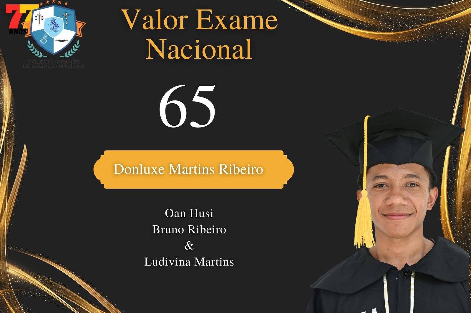 Iha nivel nacional, estudante ho naran Donluxe Martins Ribeiro konsegue hetan Primeiro Lugar iha Departamento Ciencia Socias (CSH), ne’ebe hatudu katak estudante sira iha kualidade aas, disciplina no esforsu boot iha prosesu aprendizajem. Prestasaun ida ne’e sai hanesan prova katak Colégio Infante de Sagres Maliana iha kapasidade atu konkore ho escola sira seluk iha rai laran tomak.